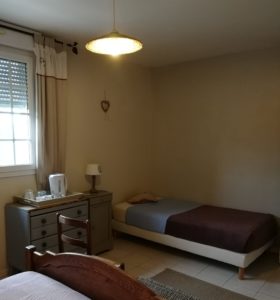 Côté pratique : Cette chambre comprend un lit de deux personnes et un lit d’une personne + une salle de bain